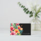 Make a tropical bold and sophisticated first impression with this watercolor fashion modern floral business card featuring a dramatic black background. Delicately painted floral hibiscus elements in pink, yellow and orange, and greens pop vividly against the dark canvas, blending artistic charm with modern elegance. The minimalist yet eye-catching layout offers ample space for your name, profession, and contact details—balancing creative and professional effortlessly.