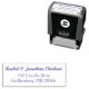 Easy to edit clear self inking stamp with a couple's name and street address you can change by clicking on the "Personalize" button above. Perfect for the return address on thank you cards, we've moved notifications, and letters.