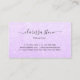 Pretty business card design featuring faux purple glitter texture and elegant calligraphy font.