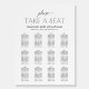 A Modern Wedding Theme seating arrangement chart that will compliment any minimalist style wedding. A sleek design and customizable features ensure seamless guest navigation. Easily edit the number of tables and guests. Matching items in our store Cava Party Designs.