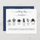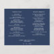 Elegant modern timeline program. Ability to select customize and change navy blue background color to another color matching your theme. Personalize dinner image with your own initials. Use of modern hand written calligraphy details. Images in elegant black, gray and taupe tones. Ability to customize information on the back to suit your needs.