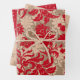 The first sheet showcases a beautiful floral design of flowering Acanthus plants, rendered in a sophisticated palette of burnt red and taupe, with lighter accents in tan. This design is ideal for those who appreciate classic botanical illustrations and would be perfect for wrapping gifts for adults or anyone who enjoys traditional holiday aesthetics with a modern twist.