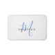 Elegant Modern White Blue Script Monogram Bath Mat. An elegant blue script monogram combined with a clean black san-serif font makes for a contemporary look.