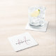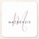 Elegant Modern White Blush Pink Script Monogram Square Paper Coaster