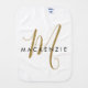 Elegant Modern White Gold Script Monogram baby burp cloth. An elegant gold script monogram combined with a clean black san-serif font makes for a contemporary look.