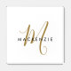 Elegant Modern White Gold Script Monogram Coaster Set. An elegant gold script monogram combined with a clean black san-serif font makes for a contemporary look.