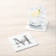 Elegant Modern White Gray Monogram Name Script Square Paper Coaster