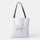 Elegant Modern White Green Script Monogram Tote Bag. An elegant green script monogram combined with a clean black san-serif font makes for a contemporary look.