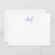 Elegant Modern White Lavender Script Monogram Note Card. An elegant lavender script monogram combined with a clean black san-serif font makes for a contemporary look. Thin border on the reverse of the note card.