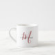 Elegant Modern White Red Script Monogram Espresso Cup. An elegant red script monogram combined with a clean black san-serif font makes for a contemporary look.