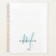 Elegant Modern White Teal Script Monogram planner. An elegant teal script monogram combined with a clean black san-serif font makes for a contemporary look.