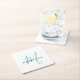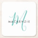 Elegant Modern White Teal Script Monogram Square Paper Coaster