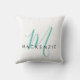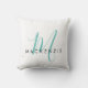 Elegant Modern White Teal Script Monogram Throw Pillow