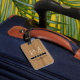 A classy and nice bag-tag with your name and initials on a background imitating wood... to easily identify your belongings when traveling...