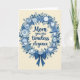Designed with a circular wreath of blue leaves and blossoms, this card sets a calm, affectionate tone like a quiet tea shared with someone you love ❤️. Soft blue shades—from deep navy to pale sky—curl around a warm cream background, giving the scene a gentle, cozy glow. Tucked into the wreath are classic white dishes and tea pieces with delicate blue patterns, including stacked plates, teacups on saucers, a small creamer, and a lidded container, arranged as if set out for a caring visit. The ceramics feature tiny floral curls and faint countryside-style scenes that feel like cherished keepsakes passed between close family and friends. In the center, the message “Mom you are timeless elegance” sits in deep blue lettering, easy to read and framed neatly by the wreath. A satin-like bow in matching deep blue rests at the bottom of the circle, adding a gift-like touch that pairs nicely with a small 🌼. The overall layout keeps the text centered while the detailed dishes and flowers form a balanced ring around it, with the bow anchored at the base of the wreath.