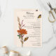 A perfect burnt orange dahlia with wheat stalk and ruby botanical adorns this blush wedding program with monarch butterflies. The program gives all the important details of your special day. This nature inspired fall wedding stationery suite is both rustic, and chic. The collection exudes elegance and natural beauty. Let this harmonious autumn blend of colors and design create an unforgettable celebration.