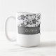 This black and white pattern monogrammed Olovia mug makes the perfect gift for her. The design features a classic gray and black pattern. Personalize the mug with her first or last name.