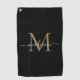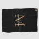 Elegant Monogram Black Gold Girly Script Name Golf Towel