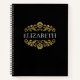 An elegant black and gold notebook for your office or back to school. Add your name between the gold floral flourish on the front and an initial on the back. Designed for you by Blackberry Boulevard.