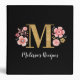 An Elegant Monogram Pink and Black Floral Script Recipe Binder. This binder is decorated with the monogram letter M. Pretty and girly for your favorite recipe collection. Designed for you by Blackberry Boulevard. If you don't see the letter you need message me in the chat.