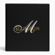 Elegant Monogram Black Gold Script Name 3 Ring Binder