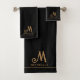 Elegant Monogram Black Gold Script Name Bath Towel Set