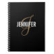 Elegant Monogram Black Gold Script name Notebook