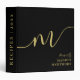 Elegant Monogram Black Gold Script Office School 3 Ring Binder