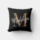 Elegant Monogram Black Gold Stylish Girly Script Throw Pillow