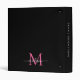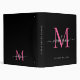 Elegant Monogram Black Hot Pink Office School 3 Ring Binder