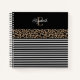 An elegant black leopard animal print and black and white striped monogram notebook for your office or back to school. Add your name and initial between on the front. Designed for you by Blackberry Boulevard.