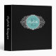 Elegant Monogram Black Teal Script Name Initial 3 Ring Binder