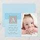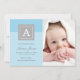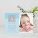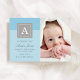 Elegant Monogram Block Baby Boy Sky Blue Birth Announcement