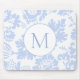 Elegant Monogram Blue Floral Botanical Mouse Pad