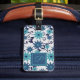 Elegant modern blue white turquoise flower pattern luggage tag. Customize the front with your monogram letter and add your contact details on the back. Great as a gift.