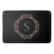 Elegant Monogram Modern Classic Blush Black Bath Mat. Initial monogram in elegant gray text encircled by a dusty rose blush insignia embellishment seal frame on black. Visit our store, Austen & Grace, to view the full wedding suite, matching products and more, and please contact us if you require any assistance: contact@austenandgrace.com
