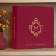 An elegant burgundy and gold design with the monogram initial in a vintage crest. The crest is faux gold foil, the background is burgundy. In the lower part, there is the name in small golden caps. The name is also written on the spine.