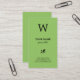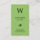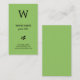 This elegant design with green background (front and back) and black text features large black letter at the top for your initial/monogram, and ornament below your name.