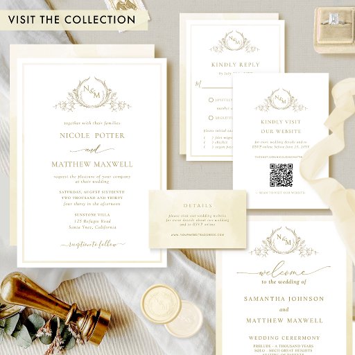 Elegant Monogram Champagne RSVP Online QR Code Enclosure Card