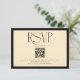 This elegant RSVP card features a sophisticated cream background with a large, modern 'RSVP' in black serif font. Below the text, a QR code is prominently displayed, making it easy for guests to scan and RSVP via your wedding website. The design also includes a clear call to action and your wedding website URL. This minimalist and chic design is perfect for couples seeking a modern and convenient way to manage their guest list. The clean layout and classic typography ensure a timeless feel, while the QR code adds a practical touch for a seamless guest experience. Make it easy for your loved ones to confirm their attendance for your special day with this stylish and functional response card.