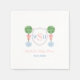 This classic napkin design features a simple 3 letter monogram crest flanked on either side by a handpainted topiary ball in a ginger jar planter adorned with pink floppy bow. Watercolor elements were painted by me onto 100% cotton paper and scanned into digital form. The crest shape is by another artist. This design would work equally well for a baby shower (where the baby's name has been announced) or for a wedding / couples shower.