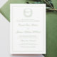 Elegant Monogram Crest Sage Green Wedding Invitation