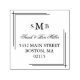 Elegant return address rubber stamp with your monogram and name and address inside a broken frame of clean lines.
