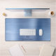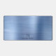 Custom Elegant Monogram Faux Blue Brushed Metallic Desk Mat.