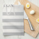 Elegant Monogram Faux Silver Gradient Grey Stripes Kitchen Towel