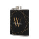 Elegant Monogram Geometric Pattern Black Gold Name Flask