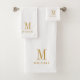 Personalized elegant monogram black gold script name bathroom towel set. Refresh your bathroom decor with a minimalist typographic style.