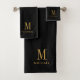 Elegant Monogram Gold Script Name Black Bath Towel Set