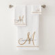 Elegant Monogram Gold Script Name White Bath Towel Set