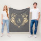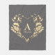 Modern, elegant, stylish gray fleece blanket with elegant gold foliage heart monogram.